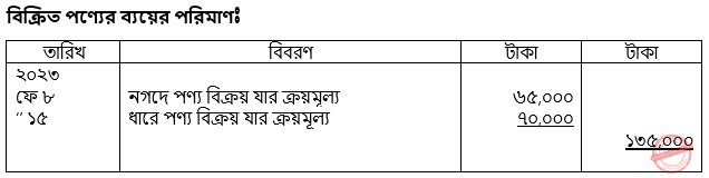 যেসব খাত বিক্রয় জাবেদায় অন্তর্ভুক্ত হবে না, তার পরিমাণ নির্ণয় :