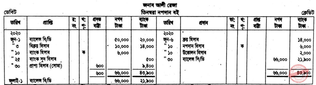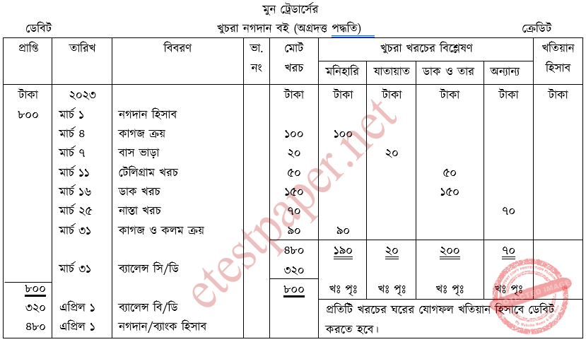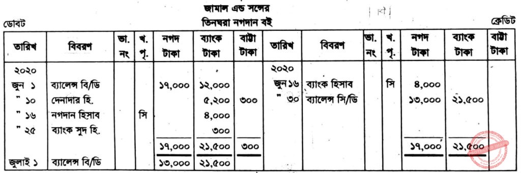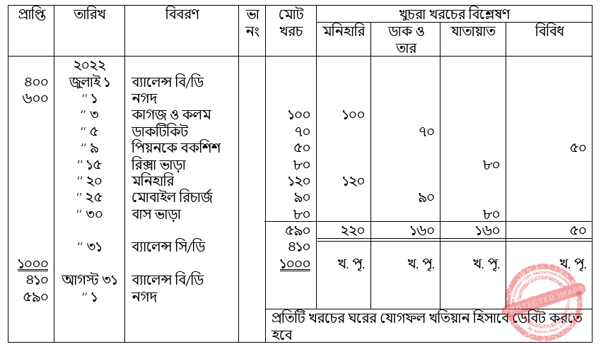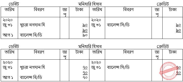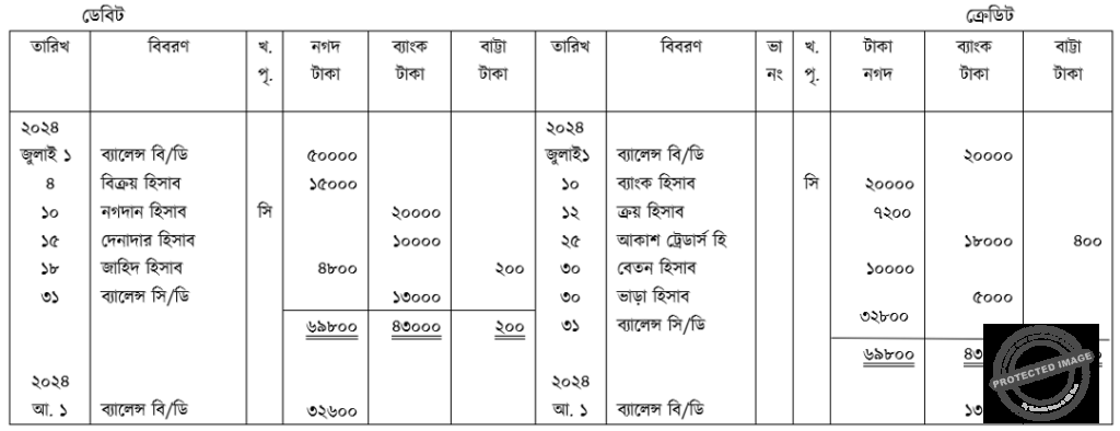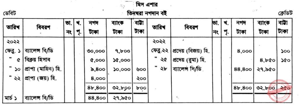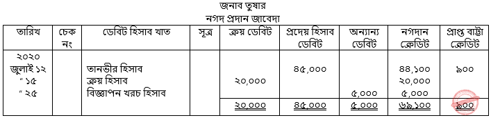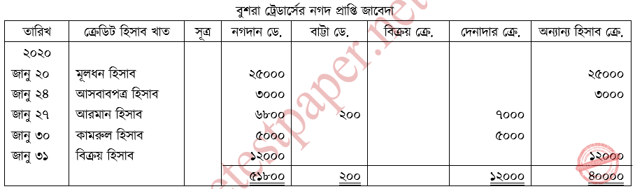 নগদান বইতে অন্তর্ভুক্ত হবে না এমন লেনদেনের পরিমাণ নির্ণয়ঃ
