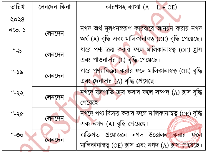 যে ঘটনাগুলো লেনদেন নয়, তার পরিমাণ নির্ণয় করা হলোঃ