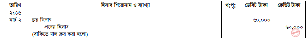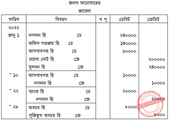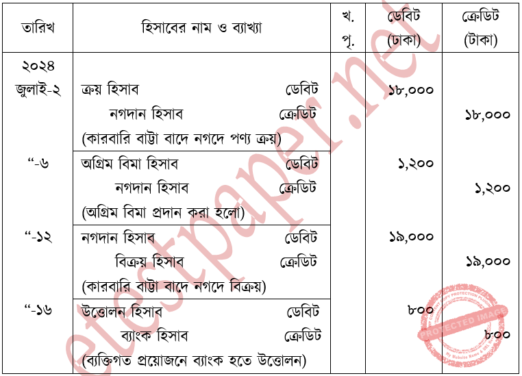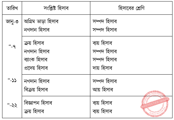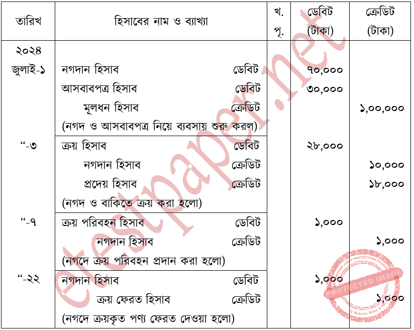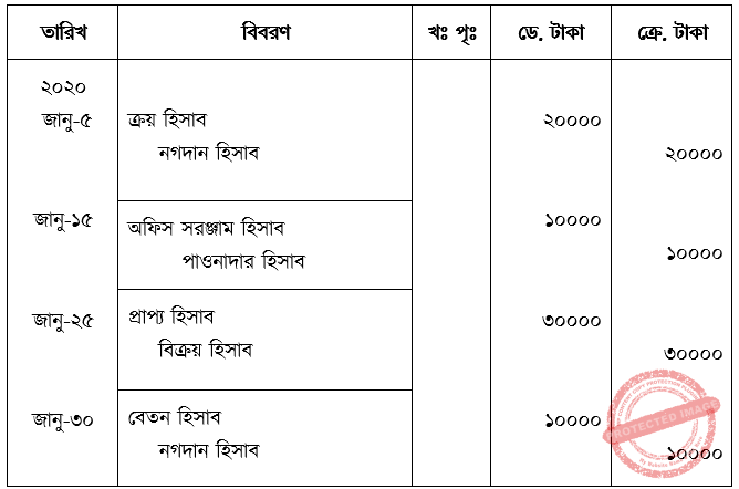 যে লেনদেনগুলো নগদান বইতে অন্তর্ভুক্ত হবে না তাদের জাবেদা দাখিলা নিম্নরূপ:
