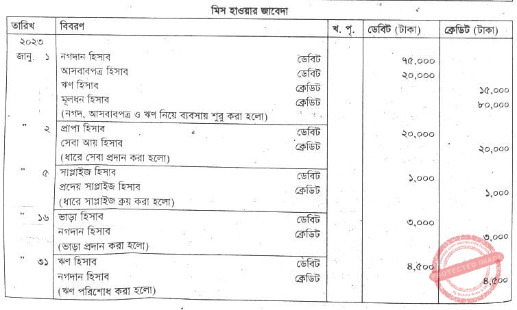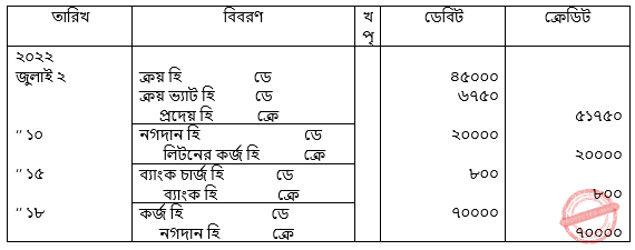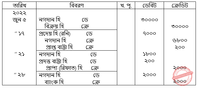 ৫ তারিখের লেনদেনটি জাবেদার নিয়ম অনুযায়ী নগদ লেনদেন। সুতরাং উক্ত লেনদেনটি চালানে অন্তর্ভুক্ত করা হলো না।